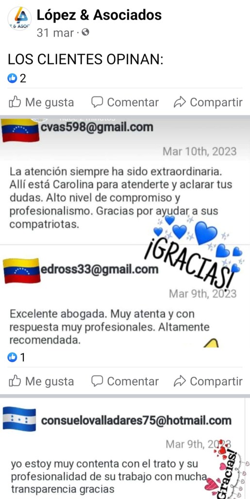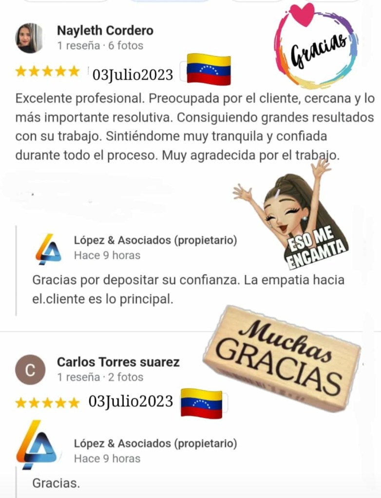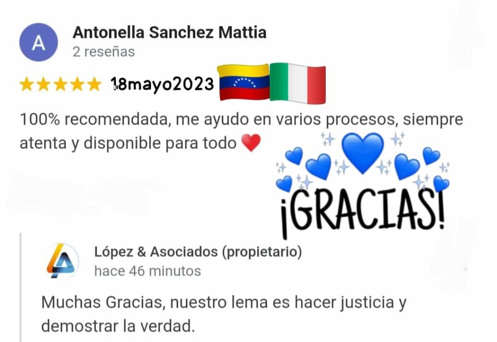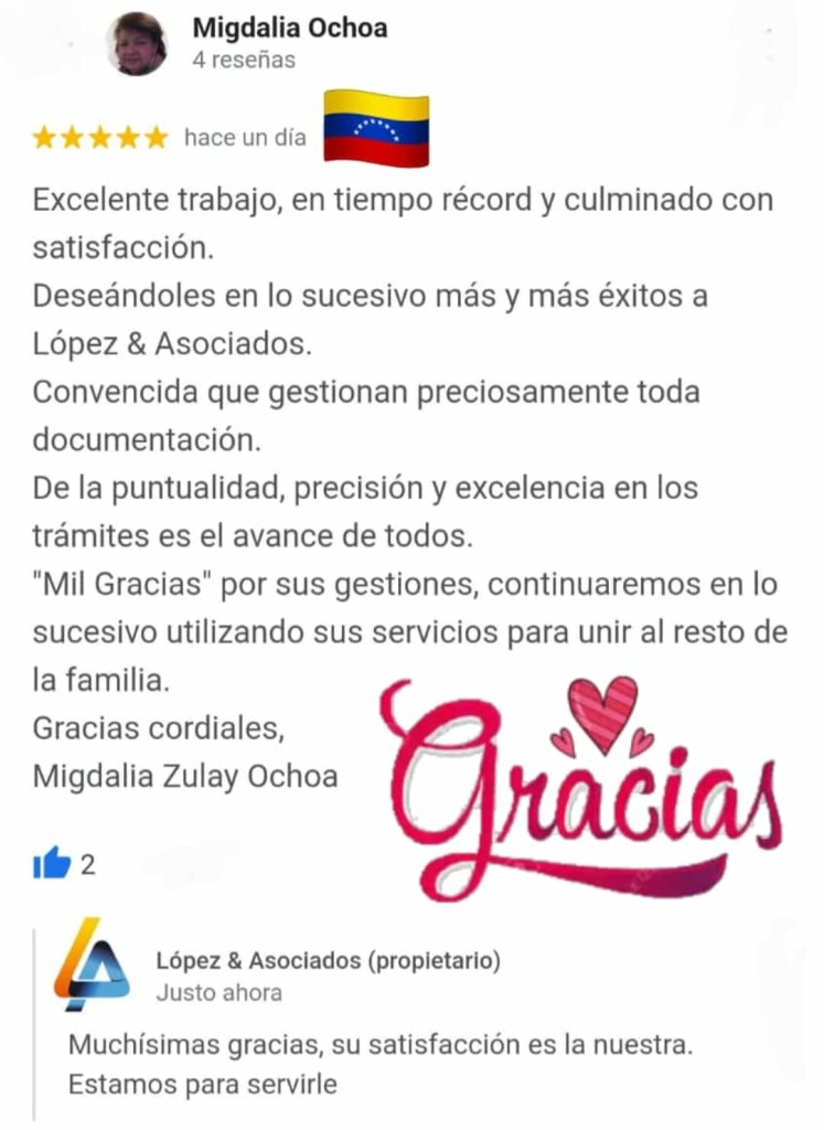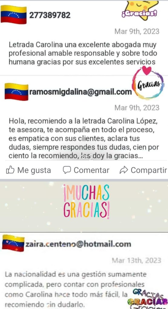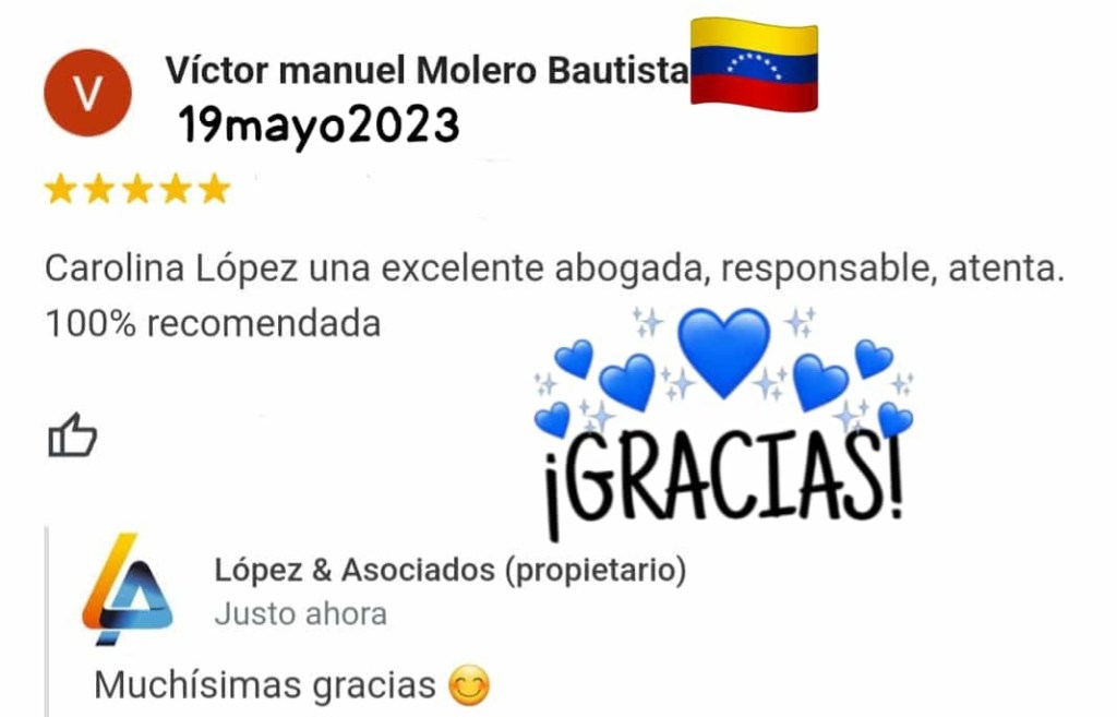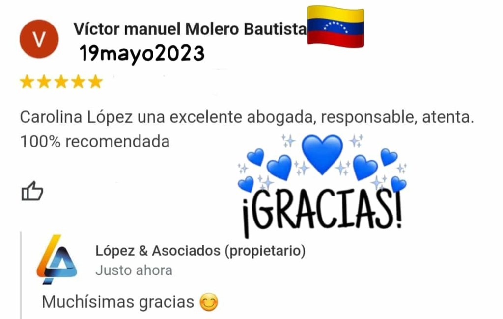 MILAGROS CAROLINA LOPEZ DAVILA, abogada egresada de la Universidad Santa María, Caracas – Venezuela, titulación Homologada, como Abogada Española e inscrita en el Ilustre Colegio de Abogados de Las Palmas de Gran Canaria; con despacho profesional en Calle Pelota, N 21, 1- G, Vegueta, Las Palmas.